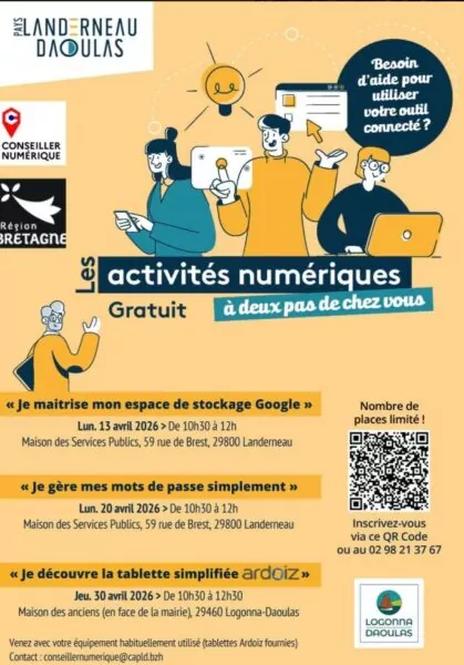 La Communauté d’agglomération du Pays de Landerneau Daoulas est heureuse de vous annoncer la reprise des ateliers numériques collectifs dès le mois d’avril.